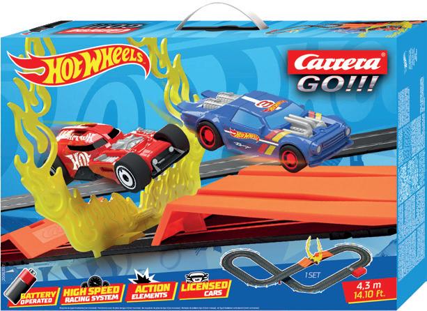 Hot Wheels 4.3 offers the perfect introduction to Carrera Go!!!, offering a lazy figure-8 circuit incorporating a flyover, signature-orange jump ramp, fire ring and Hot Wheels themed crash barriers. Being battery-operated, kids have the flexibility to set up their track anywhere convenient indoors.
