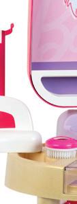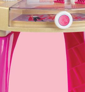 The Barbie Beauty Studio Happy Vibes is where future stylists can create beautiful looks. The dressing table is equipped with a rotating mirror so that little ones can look at themselves from all sides. They can create the perfect hairstyle with a comb, brush and hair clips. Nails can be groomed with a file and cuticle pusher and then embellished with pretend nail polish, before using the nail dryer with air and sound effects. Dummy lipstick adds the final touch.