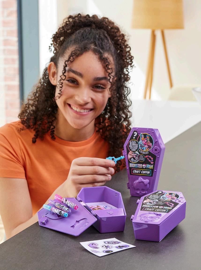 ecorate and Reveal Craft Coffin pocket money craft line is already proving popular with retailers. It comes as a blind pack, with eight crafty surprises and a secret Monster High character lurking inside. Packed full of monster makeover delights, such as ghoulish false nails, stickers and hair extensions, the Monster High Ghoul Station is scarily fun.