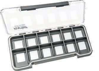 Magnetic bottom compartments to hold any small metal part such as hooks, swivels, snaps, jig heads). Single-handed locking bar. Ultraslim profile (16 mm only).
