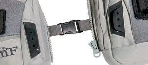 • Adjustable belt, closed by a wide plastic clip and padded by breathable fabric
