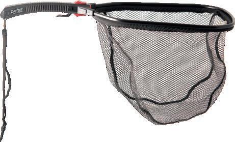Ergonomic, tapered, non slip rubber handle. Stiff, yet slim, aluminium frame. Elastics for the safe connection to belt or vest, with two snaps at different positions. Rubberized, no-tangle deep net for the total fish protection.