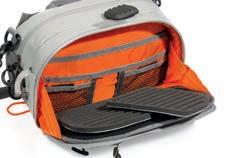 • Large front pocket, whose lid can be opened to create a momentary support plane and equipped with a rack for flies and lures