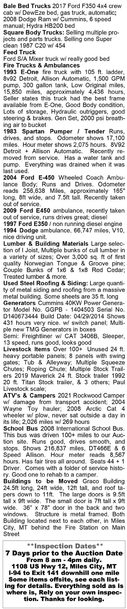 Oct 29 - Nov 12, Yellowstone Auction, Farm, Ranch, Construction, Online...A7 Nov 17, Smith Sales Co., Corn Silage, Online A16