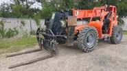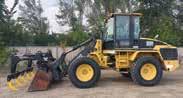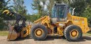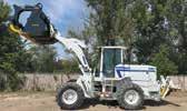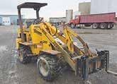 6 cylinder International? engine w/ Berkeley pump. 5” inlet, 4” outlet. Propane powered. 6-ft. wide rock forks bucket.