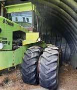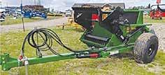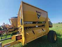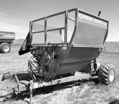 Hesston 4910 4x4 big square baler 6 string, 7 Ft wide pickup, big 1000 PTO, Gandy liquid applicator box, 28L-26 single tires, bale chute, monitor and owners book, 80,000 plus bales. 2024 New, Tube-Line BF 8000 round bale processor, two spear rear bale loader carrier, hydraulic drive, 400/60-15.5 tires, new never used, Serial # 24BFSL8005.