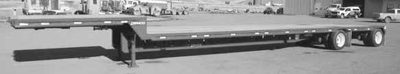 2004 Wilray frame drop deck equipment trailer, 30 Ft overall length, 17 Ft from back of neck to the front of tires, 13 Ft from front of tires to end of trailer, 11.8 Ft wide, spring ride, tandem duals, 255-70R22.5 low pros.