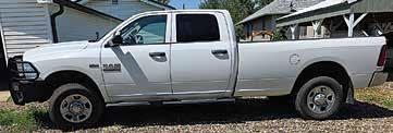 1972 Ford 2-ton truck. 360 engine. 1,000 miles on pro overhaul. 14-ft. bed w/steel floor and hoist. 28” grain sides and stock rack.