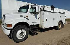 2001 International 4900, service truck, DT 466 diesel engine, 6+ plus transmission, Feterl 14 Ft service body, 8 compartments, on board Van air system, hydraulic out riggers, G2-6H Feterl crane corded remote, all steel wheels, 11R22.5 tires, rear drivers are very nice, shows 141,991 miles, 6,367 Hrs. this is a very clean service truck Comet 28 Ft single axle dry van trailer, 2 rear doors, trailer sells with an V-8 Detroit turbo diesel powered Synchronous Generator, 1,2,3 phase, 240 volts 200 KW 250 KVA, has multiple breaker box set up inside of trailer two fuel tanks, wall venting. The engine shows 1,321 Hrs.