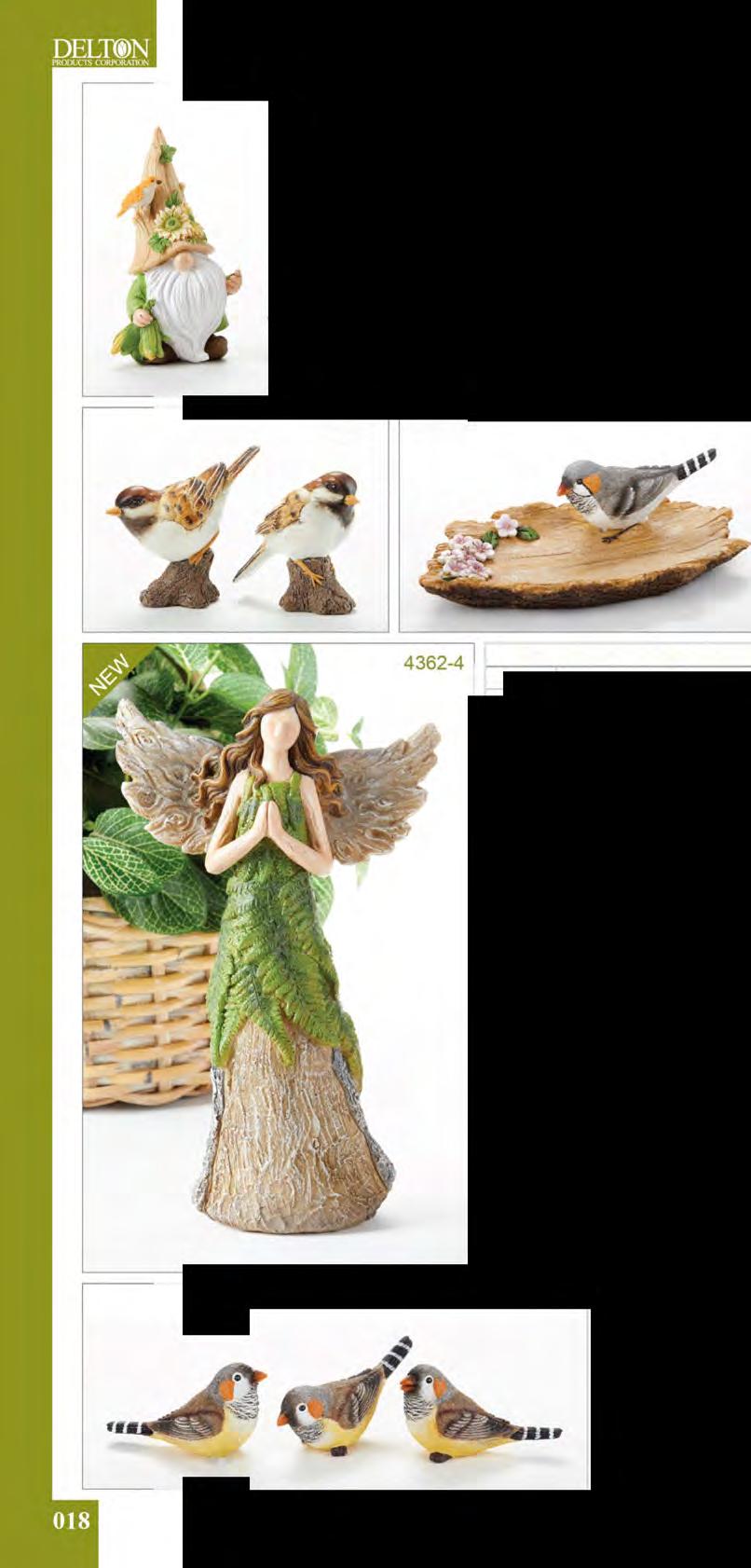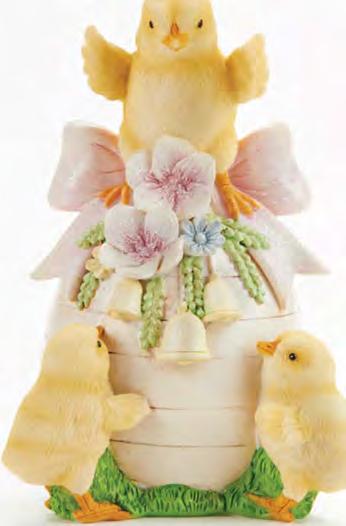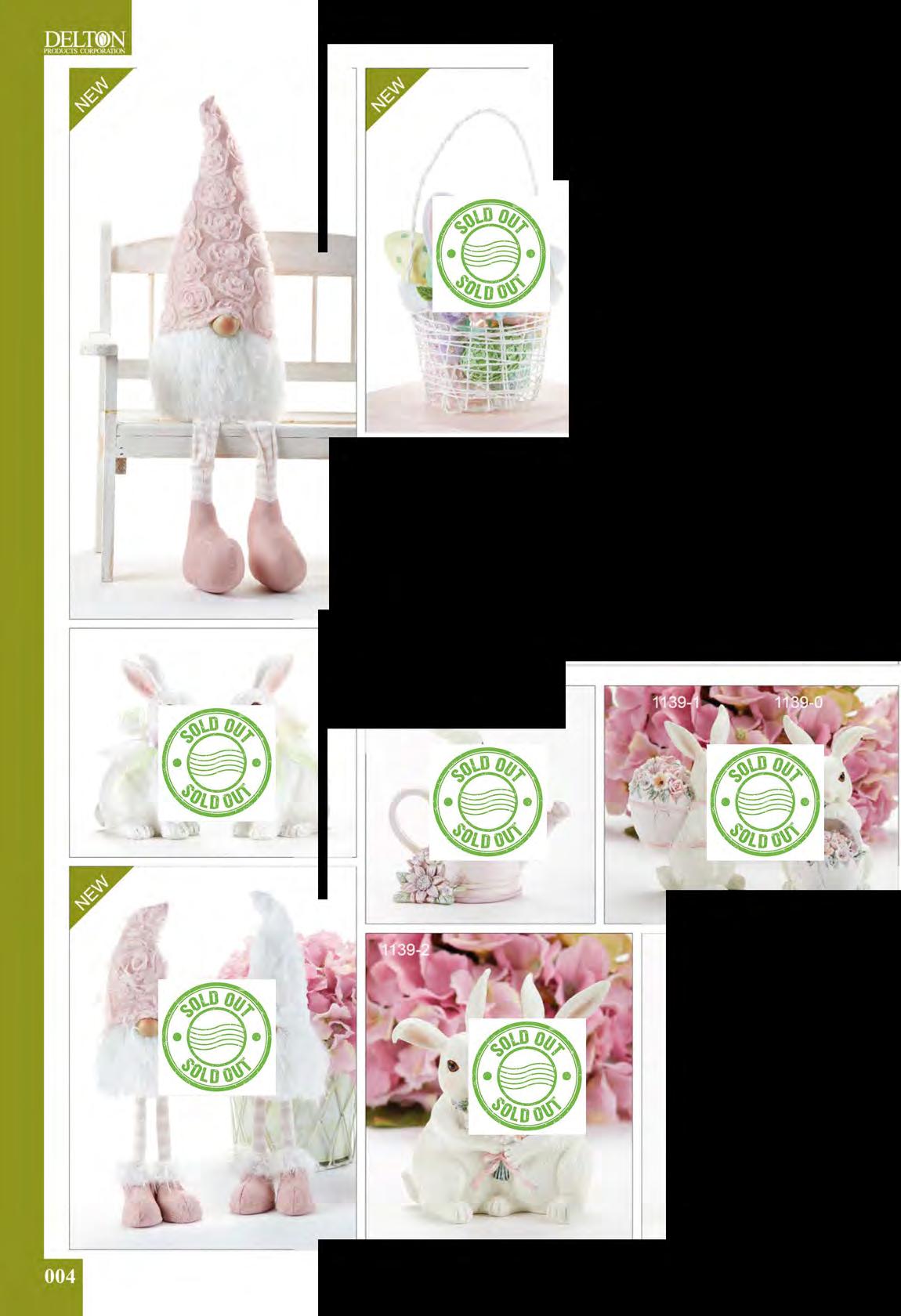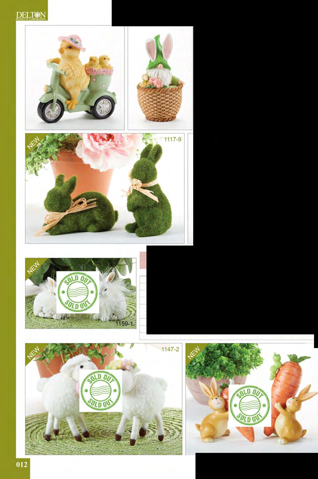 1116-4 2.95" Resin Chick & Egg "Easter" Sign 4 /$6.25ea 12 /$5.75ea 1128-3 1.5" Resin Fuzzy Spring Chick 1139-3 4.3" x 5.9" Resin Blush Chicks on Floral Egg 1140-6 10.4" Resin Garden Bunny w Carrot & Basket 1149-3 2 x 3.9" Wool Chick in Half Shell, 2 Asst 1-800-543-0209www.deltonproducts.com