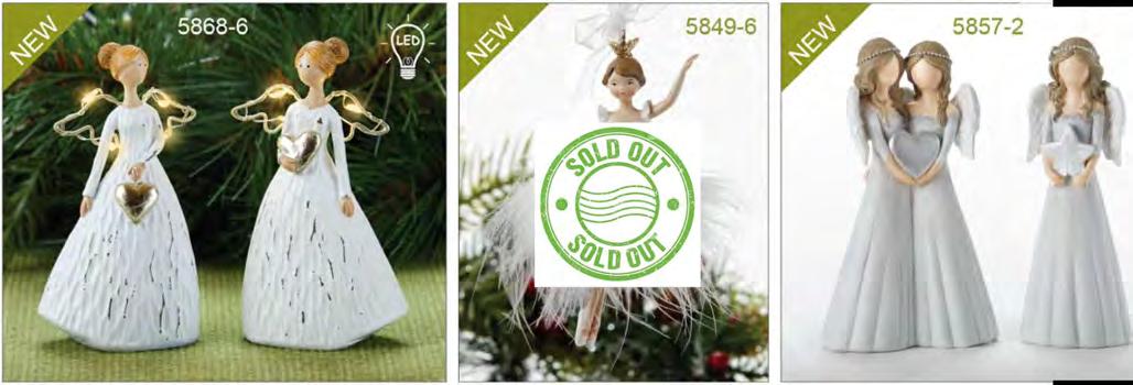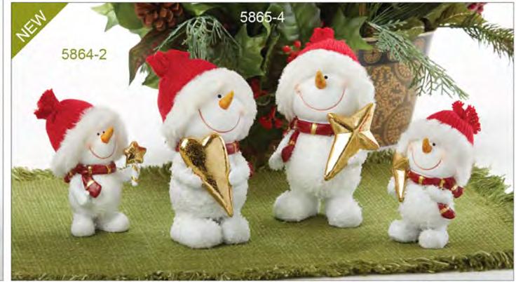5485-6 9.5" Porcelain PrayerAngel w/ Light 4 / $14.75 ea 8 / $13.75 ea 5486-1 12" Porcelain PrayerAngel w/ Light 2 / $18.85 ea 6 / $17.50ea 5697-4 9.8" Porcelain LED Snowflake Snowman 3 / $9.35 ea 18 / $8.60 ea 5770-0 3.6" Porcelain Snowflake Ornament, 3Asst 12 / $2.25 ea 24 / $2.05ea 5772-4 10.25" Porcelain LED Snowman w/ Gift 2 / $9.50ea 12 /$8.75 ea 5773-0 7.8" Porcelain LED Snowflake Snowman 2 / $7.50 ea 5836-0 5" White Porcelain LED Snowman, 2Asst 4 / $5.75 ea 12 / $5.35 ea 5836-2 4.3 x 4 7" Porcelain LED Snow Couple 4 / $9.50 ea 12 / $8.85 ea 5860-4 4 3 x 6.7" Resin Balsam Snowman, 3Asst 6 I $9.20ea 12 / $8.56 ea 5894-6 3.2 x 3.9" WhiteAngel Ornament, 3Asst 24 / $2.25 ea 48 / $2.10 ea