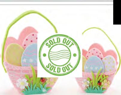 ordering. 1094-64.9"FeltBunnyBagw/Flowers,2Asst6/$1.40ea12/$1.30ea 1107-83.9-5.1"Felt2PcEggBasketSet4/$5.50set12/$5.05set 1137-65.9x625"FeltBunnyHouseBag6/$3.40ea 1147-33.2x6.7"WoolDunceChickHat.3Asst12/$4.00ea 1147-6 2x6.7"WoolEggBunny,3Asst 24/$2.90ea 1161-4 6.3x4.7"FeltGreenFlowerBasket 6/$3.90ea 1161-5 4.9x3.75"FeltBrownFlowerBasket 6/$2.50ea 1166-4 1.97"FluffyChickyDecoBoxedSetOf8 2/$4.85 set 1244-6 1166-4 1147-3 1107-8 1137-6