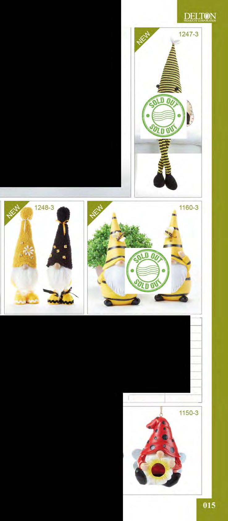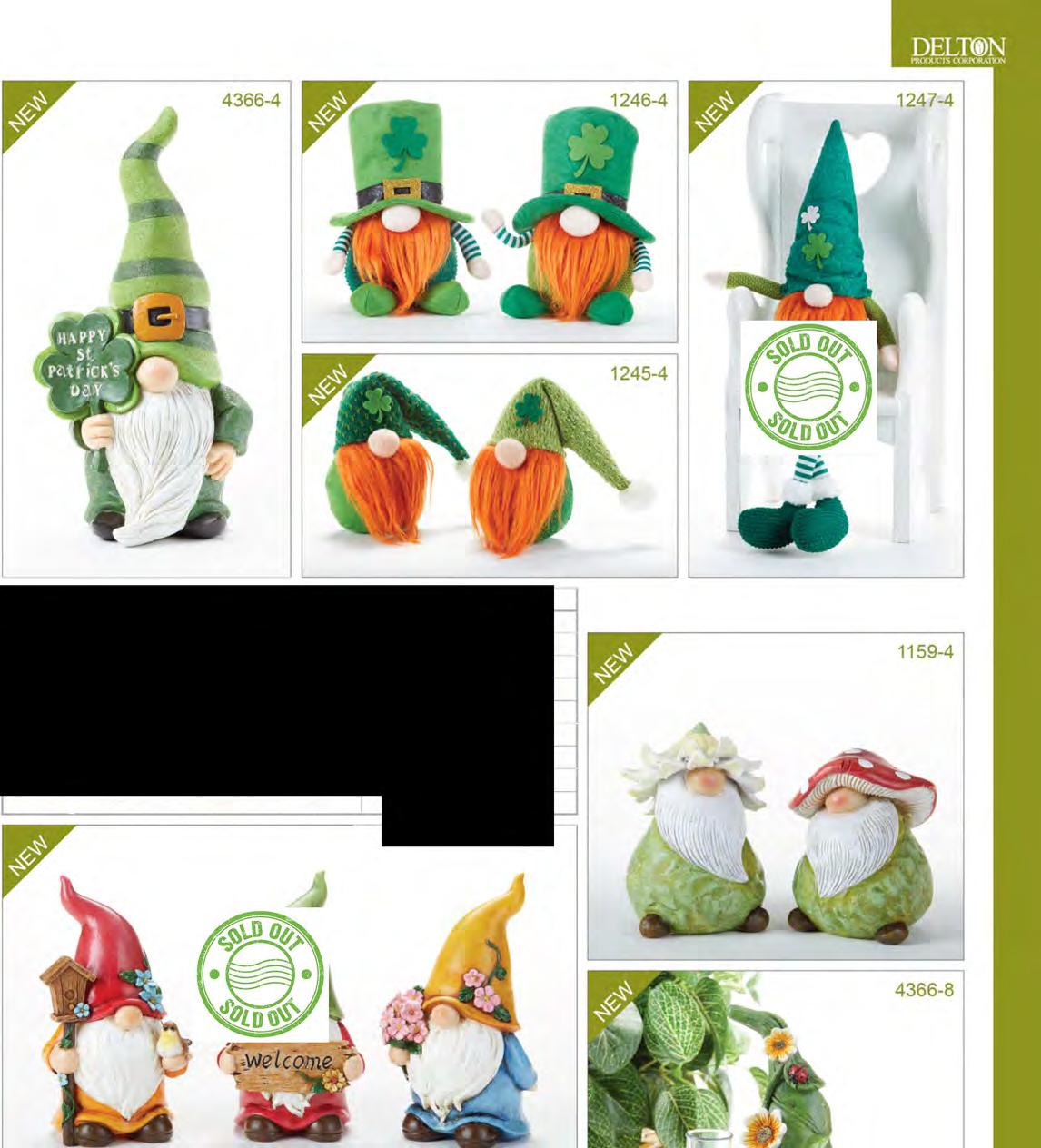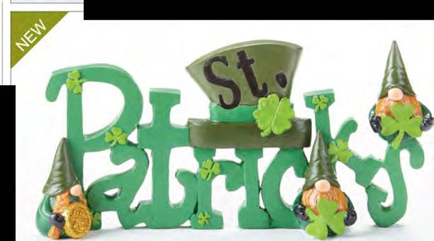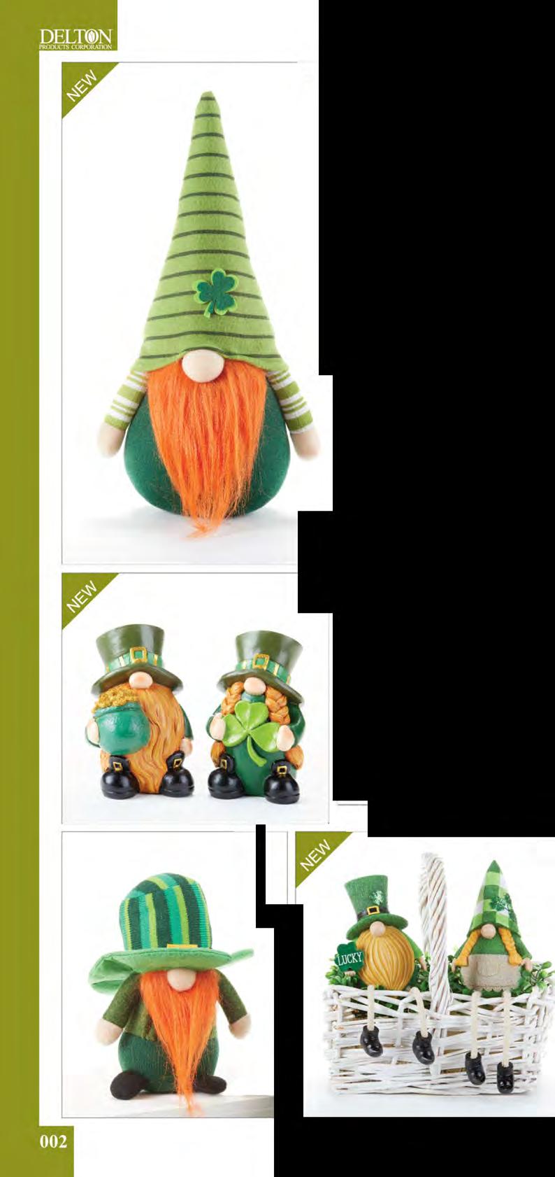 1248-4 1151-4 1152-4 1150-4 EMERALD ISLE GNOME COLLECTION Prices are subject to change without notice. Please verifyprice when ordering. 1143-4 7"StandingShamrock Hat Gnome 4/$6.40ea 8/$5.90ea f--1150-4 4.6x6.1" Resin Patty Gnome, 2Asst 6/$7.85ea 12/$7.40ea1151-4 3 9 x5.3" Resin Patty Gnome, 3Asst 6/$5.70ea 12/$5.30ea 1152-4 10.4x4.9" Resin"St. Patricks"Gnome Sign 4/$9.75ea 12/$9.10ea 1155-4 48" Resin Rope Leg IrishGnome, 2Asst 6/$7.70ea 12/$7.15ea f--- f---1245-0 5.1" Irish Gnome Ornament, 2Asst 12/$2.75ea 36/$2.55ea 1248-4 15" IrishStripe HatGnome Stump 2/$11.75ea 12/$10.80ea 1143-4 1155-4 1245-0 1-800-543-0209 www.deltonproducts.com superlowstock