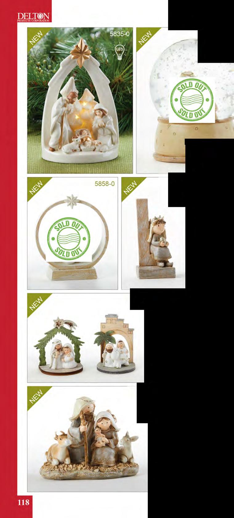 ea 5835-8 7.7" x 8.6" Porcelain Red Nativity Family 2/ $18.40 ea 6/$17.12ea 5836-6 3.8 x 4.2" Porcelain Red Family Nativity 4 I $6.70 ea 12/ $6.23ea 5849-0 3.7" x 3.9" Resin/Wood NativityOrnament 4 / $3.75 ea 24/