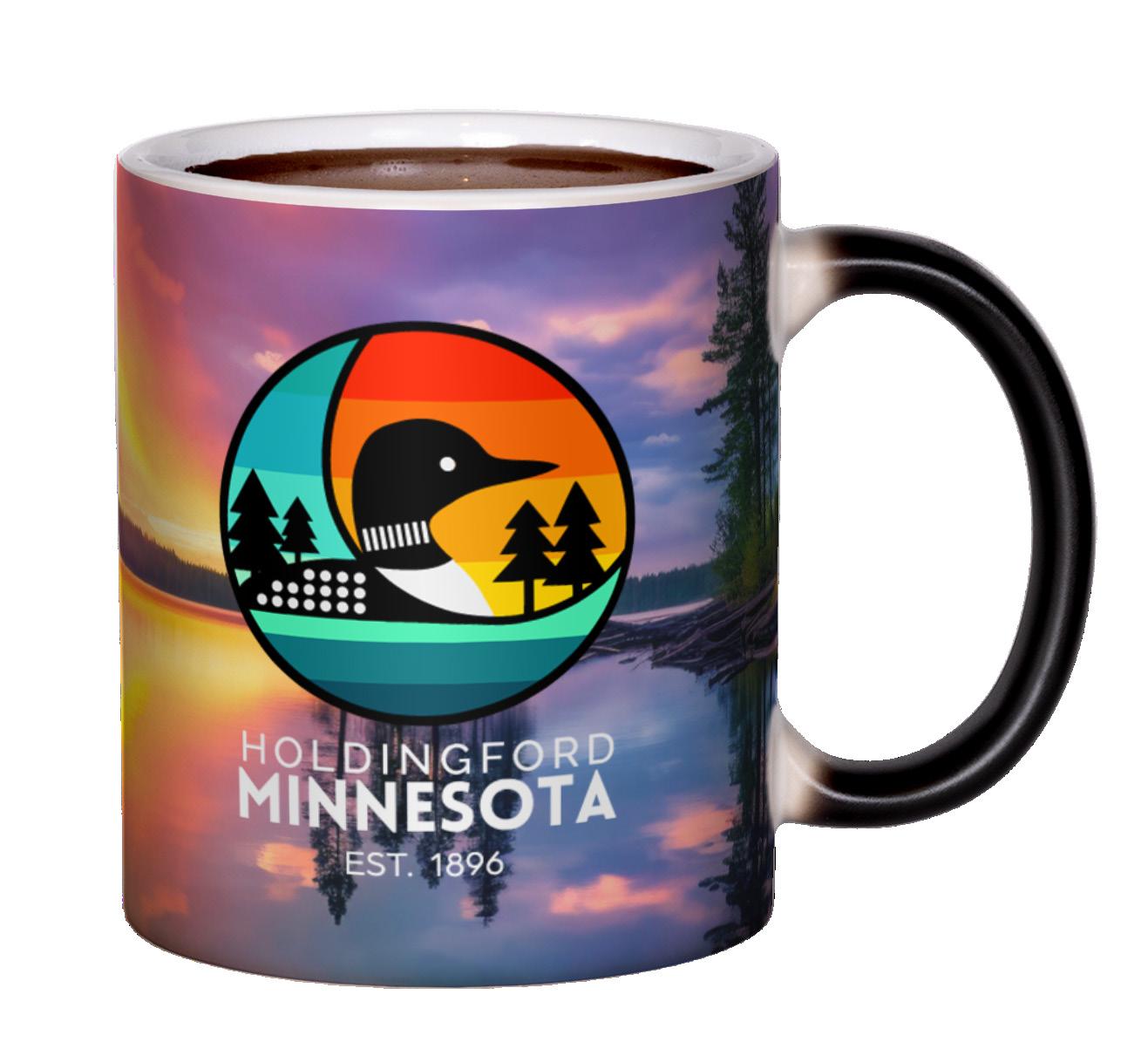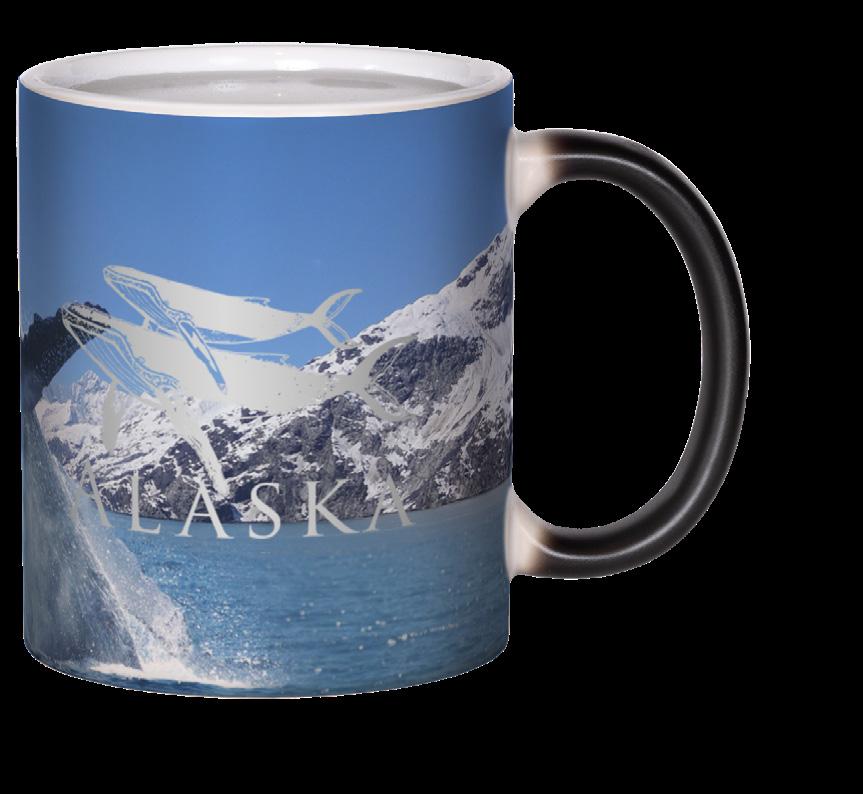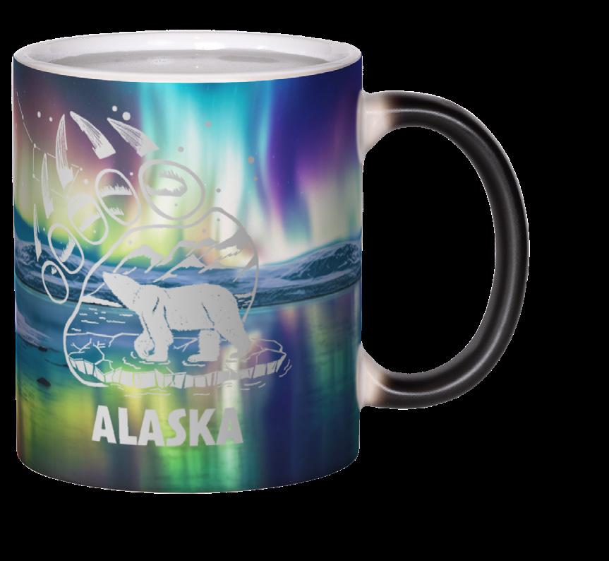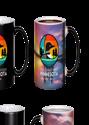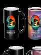 How does the color changing magic work? When at room temperature, the mug appears black. When hot liquid is added, the black thermochromic layer disappears, revealing the glorious full color hot