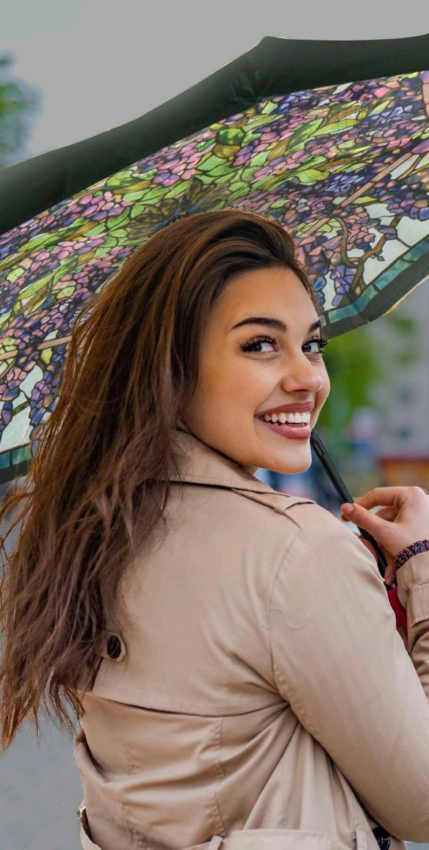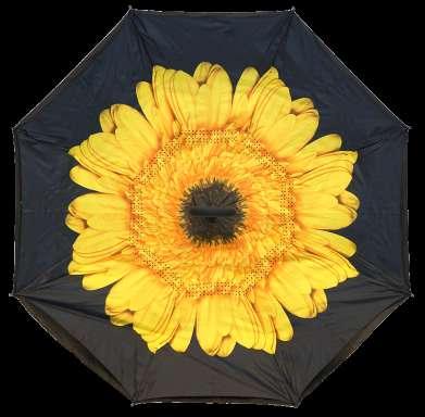 of sunshine on a rainy day. You'll smile every time you look up and see what you're standing under. The inverse opening design means the outside of the umbrella becomes the inside when you close it, keeping your car, office, and home dry. This design makes it easier to enter or exit your car, keeping you drier as well. Topsy Turvy umbrellas will make you wish for more rainy days.