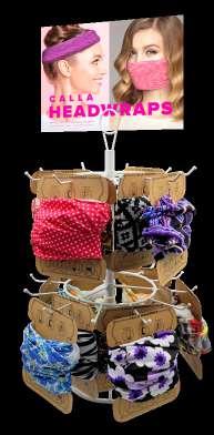 CALLA Headwraps $4.00 Active use for sports, yoga, and everyday activities. Can be worn in several different ways. Super comfortable. The soft + stretchy fabric is available in 15 eye catching colors. 3 PC. PER SKU MIN. Fashion SERIES Black 50115 Gray 50116 Blue 50117 Aqua 0060 Teal Apricot 50099 Forget Me Not 50112 Gold Snake 0053 Orange Poppies 50100 Purple Bouquet 50101 Tangerine & Black 50102 Turquoise 50103 Feathers 50105 Purple Polka Dots 0057 Lavender Swirl Multi 50104 Pink & White Sprinkle 50114 FREE Display Available upon request for orders of $400 or more of headwraps. Headwrap Assortment SKU 0085 PRICE $136.00 FASHION SERIES 34PC BEST SELLERS Sporty SERIES Hot Pink 2837 Blue 2838 Black 2840 Purple 2842 Pink/Gray 2843 Green 2844 Headwrap Assortment SKU 2120 PRICE $120.00 SPORTY SERIES 30PC BEST SELLERS Silver Snake 0054 Floral Blush 50113 2023 CATALOG 45 Accessories