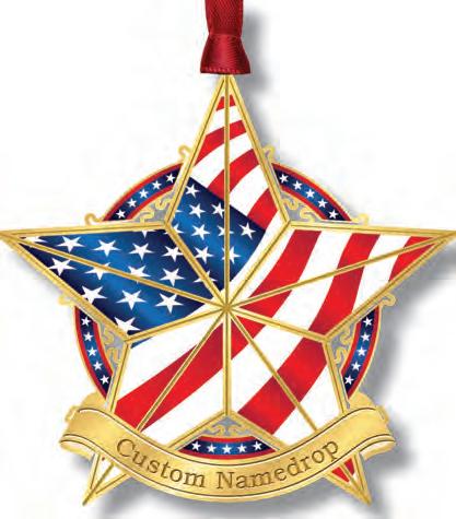 21 *Ornaments shown are not actual size BANNER NAMEDROPS Americana Patriotic Scene 58282 | $12.00 Flag Star 61289 | $12.00 American Style Barn 61288 | $12.00