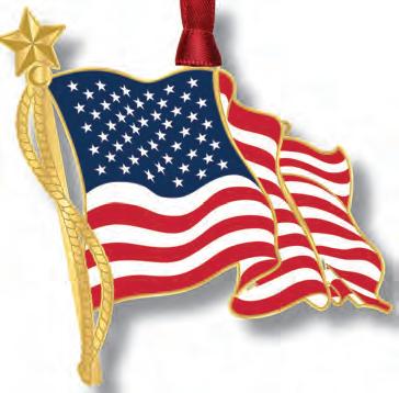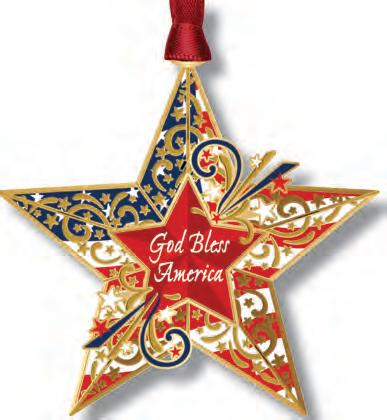 61 *Ornaments shown are not actual size AMERICANA Freedom Eagle 62621 | $12.00 USA License Plate Map 54439 | $9.00 Patriotic America 59461 | $10.00 Firefighter Shield 62778 | $11.00 First Responders Angel 62781 | $12.00 Land of the Free 62622 | $10.00