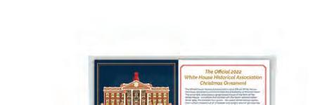 70 THE WHITE HOUSE HISTORICAL ASSOCIATION To see the entire WHHA Collection visit beacondesign.com. *Note: White House ornaments are NOT eligible for Oval Namedrop. 2019 Dwight D. Eisenhower 60467 White House Display* 55344 |$75.00 • Cost offset with FREE product at Retail. Minimum product purchase of 24 White House ornaments. • Holds 24 boxed White House Ornaments. • Display measures 13” wide by 13.5” high by 13” deep. • Includes Header Card and Information Brochures. • Made from Lucite. • Ships UPS. *Photo does not reflect 2022 display. *Ornaments shown are not actual size Please watch for The White House Historical Association supplement coming after President’s Day! COMING SOON The Official White House Historical Association’s 2023 Ornament! 2020 John Fitzgerald Kennedy 61686 2021 Lyndon B Johnson 63414 2022 Richard Nixon 64297