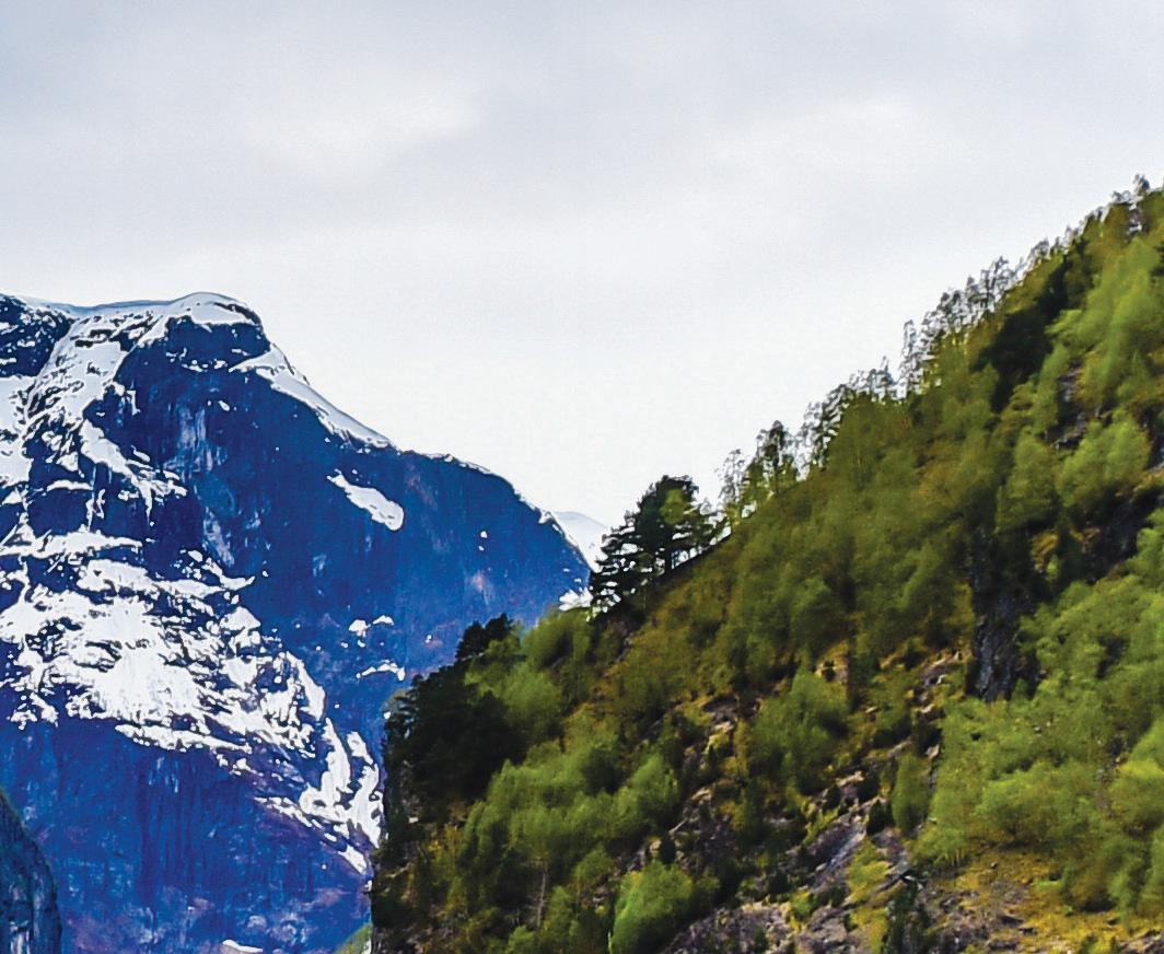Tailored by You: Be wowed as you glide through the UNESCO-listed Nærøyfjord. This fjord is a live-action painting with its waterfalls, snow-draped peaks, and quaint villages. Choice Experience on Highlights of Scandinavia (p. 64-65).