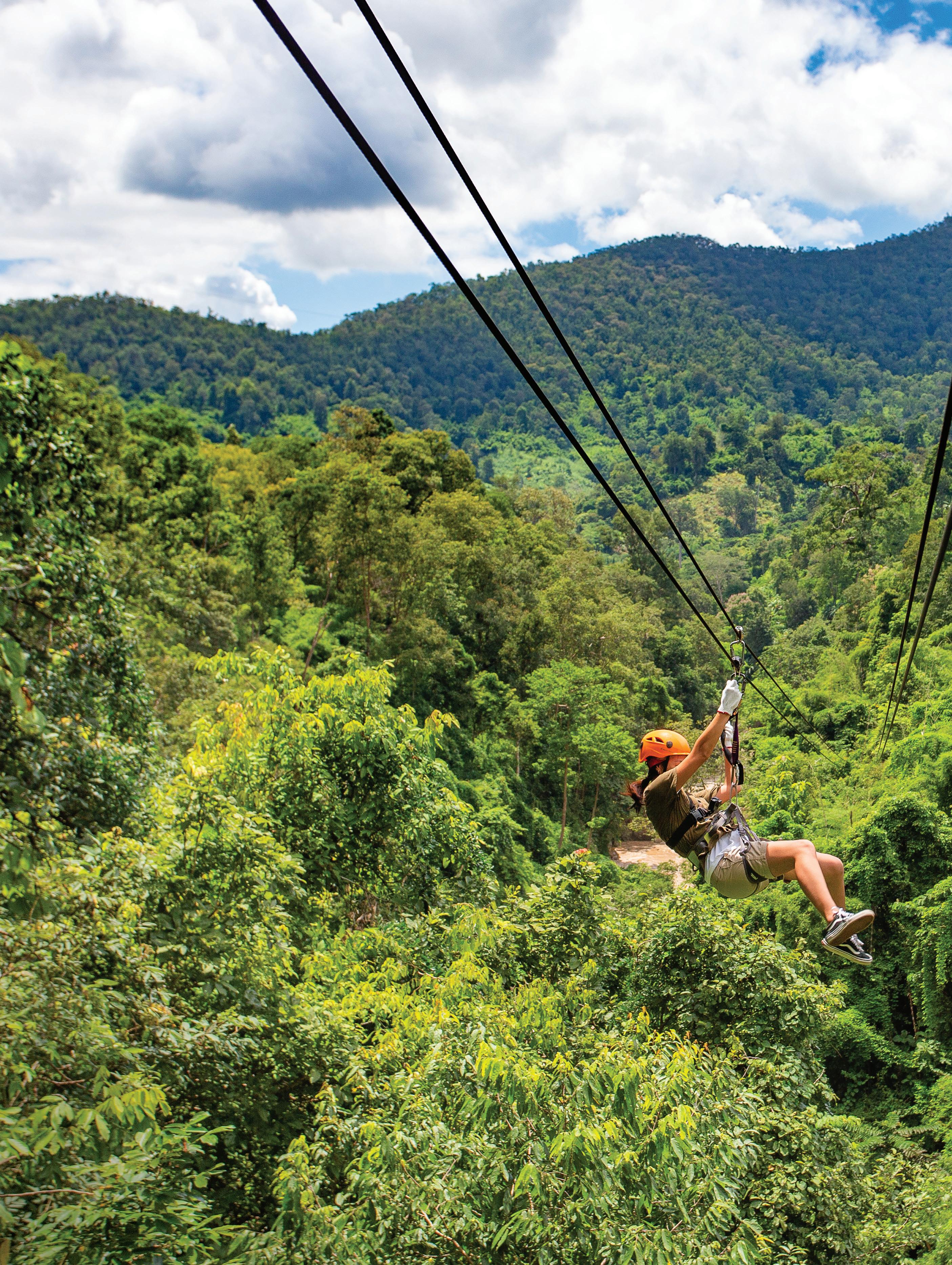 Fly among the trees on a gondola, looking for local wildlife. Return the same way or via a series of zip lines on the Sky Trek.