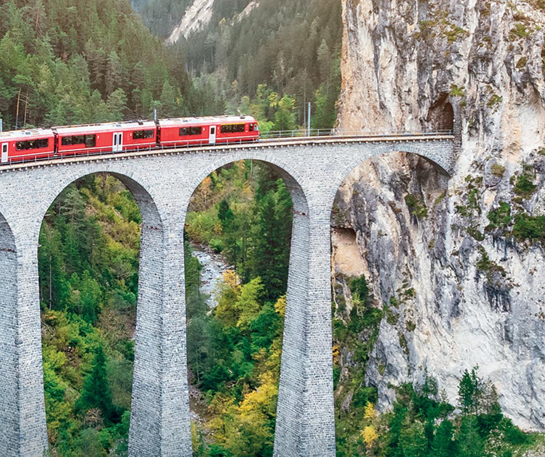 Zip through the Alps on the world-famous Glacier Express. Enjoy lunch on board as you journey past lakes and glaciers to Zermatt, at the foothills of Matterhorn Mountain. Experience on Contrasts of Switzerland (p.112).