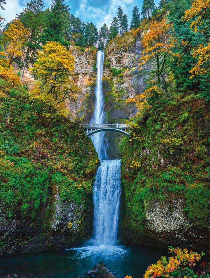 Alaska’s Kenai Fjords National Park is rich with natural wonders from giant glaciers to soaring mountain peaks. Keep your eyes alert and cameras ready for the “locals” bears. Majestic Alaska (p.22-23).