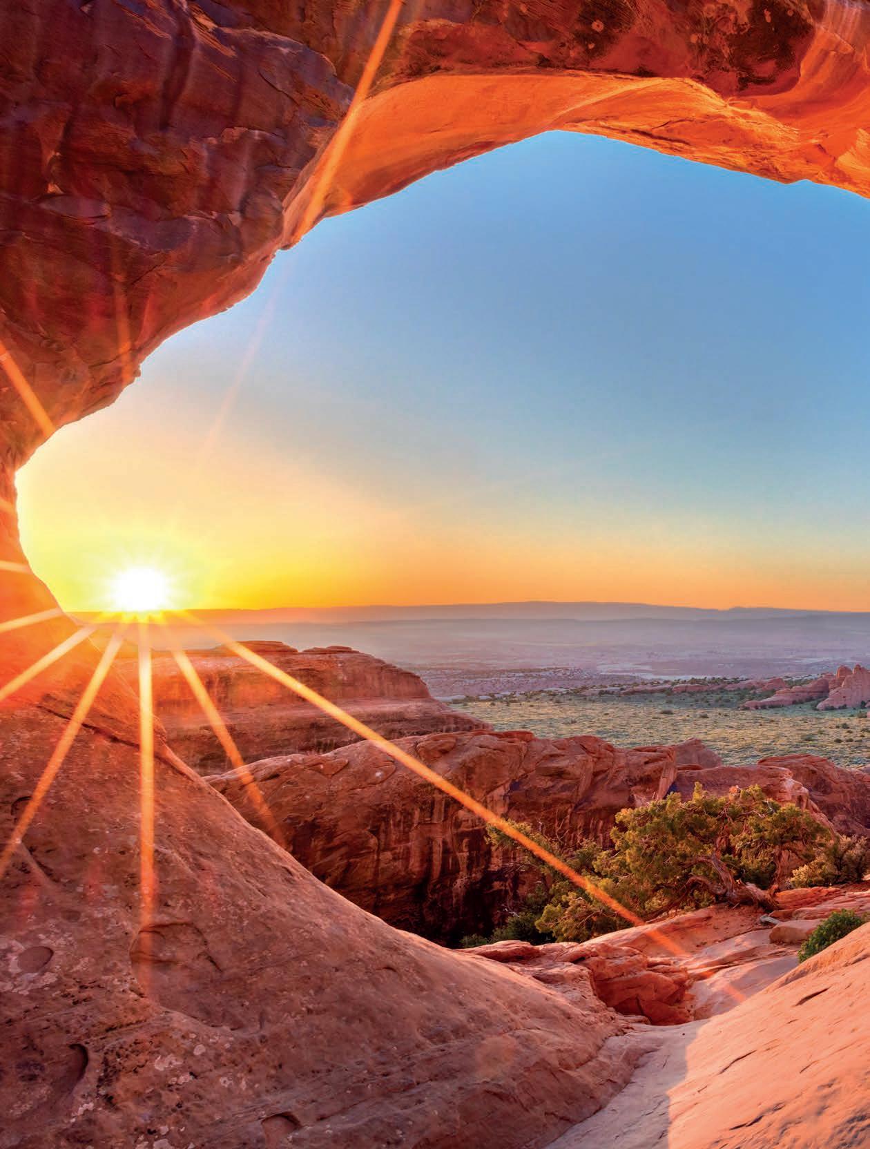 You’ll see the rusty red limestone spires rising from the desert floor to meet Utah’s brilliant skies and think there’s nowhere else on Earth like this. Stop and take it all in at the many viewpoints and hike the trails into the canyons. Experience on Five Epic National Parks (p.38).