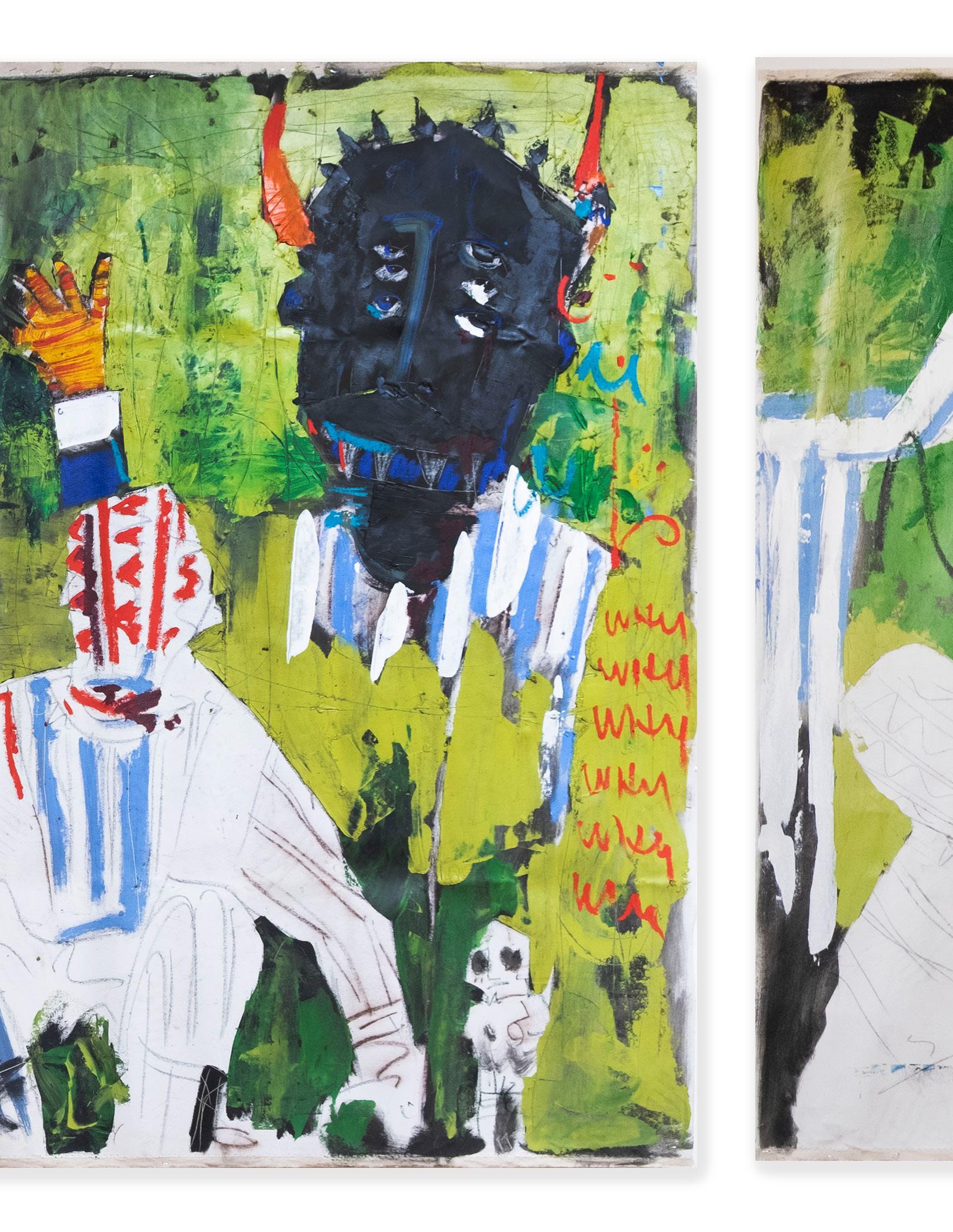 Oil, oil stick, pigments, and charcoal on canvas 48 x 72 in. (120 x 180 cm) each 96 x 72 in. (240 x 180 cm) total