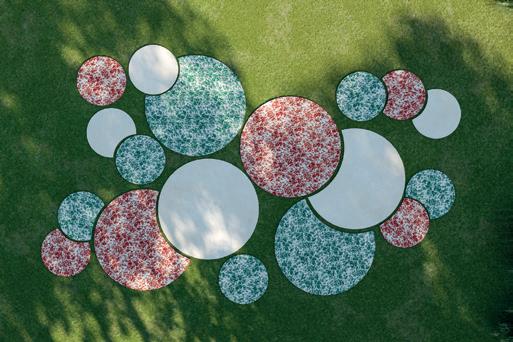 1 Suspendu. Assise flottante Aprile de Matteo Modica pour Sublimio. Édition limitée à 60 exemplaires numérotés. Structure acier, assise noyer Canaletto, finitions blanc ou noix. Prix sur demande. thatsaprile.com 2 Chevauchement. Chêne, frêne et noyer composent la chaise Tokyo créée par la manufacture marseillaise Rinku selon la technique du mi-bois, un assemblage de deux pièces solidement encastrées. À partir de 980 €. rinku.design 3 Lunaire. Terzadimensione, fabricant italien de grandes dalles en céramique, a imaginé un système kaléidoscopique de tapis extérieurs en rond et demi-lune. Ici le modèle Foliage. 6 600 €. terzadimensione.com 4 Imposant. Inspiré par les gros blocs de pierre qui composaient les murailles romaines, Mario Bellini a créé le canapé Le Mura en 1972. Tacchini réédite la pièce en version velours. À partir de 10 164 €. tacchini.it/fr 5 Vitaminée. Conçue en 1954 par Achille