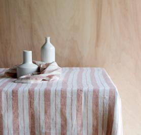 1 Artistique. Coussin abstrait Bobby en velours ras ultra-doux de Shandor. Motifs inspirés des collections des musées d’Arts, de Paris à la Normandie. 30x50 cm. Conception et fabrication françaises. shandor.fr 2 Gourmandise. Gabrielle Paris drape la table d’une nappe en lin lavé avec larges rayures glaise-milk. Finition coins capuchons. Livrée dans un pochon assorti. Existe aussi avec de fines rayures. gabrielle-paris.com 3 Tradition. Housse de couette et taies d’oreiller Lily à fines rayures rouges chez Ateliers Scarlette. En coton filé puis tissé à la main en Inde sur des métiers en bois traditionnels. Texture douce et très légère. scarletteateliers.com 4 Bucolique. La collection de serviettes Evergreen de la marque belge Libeco se prête idéalement à une table de Noël. En 100 % lin, finition lavée, coins capuchon. 42x42 cm. libecohomestores.eu/fr/ 5 Symétrie. Parure de lit Shanghai de Noël Paris. Son motif framboise se déroule sur le revers du drap ou de la couette et sur le haut des taies d'oreiller. Brodé sur percale tissée avec un coton longues fibres d'Égypte. noel-paris.com