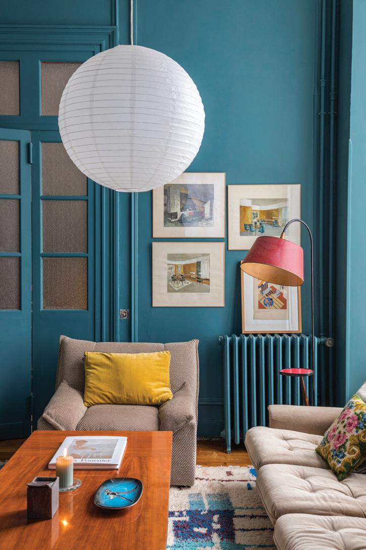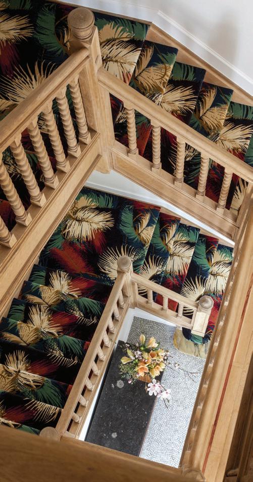 Éprise de couleurs, de matières, d’ornementations, la décoratrice a semé son audace à tous les étages tout en préservant les atouts du vieil édifice. Cette passionnée d’histoire de l’art a naturellement conservé des éléments d’origine au cachet indéniable. Le hall d’entrée garde la mosaïque au sol, le marbre jaune au pied de l’escalier, les barreaux torsadés de la rambarde ou encore, les cloisons en arches. En revanche, grand chambardement dans la cuisine que la propriétaire a voulue « comme une boîte ». Effet cocon garanti avec le terrazzo qui enveloppe le sol, le mur et le plan de travail. Côté salon, un revêtement mural en soie sauvage accueille les photos XXL d’une paire de hiboux aux yeux perçants. Victoria-Maria Geyer adore les objets qu’elle s’amuse à associer depuis sa plus tendre enfance. Sa maison fait défiler les deux derniers siècles mais peu lui chaut l’époque ou le style, la designer sait quelle place réserver à une pièce qui lui plaît. Tel un puzzle, son parti pris décoratif révèle toute son harmonie une fois les éléments assemblés. victoria-maria.com