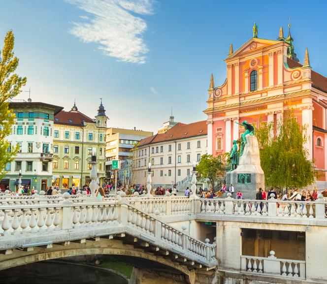 The capital of Slovenia, Ljubljana offers an exciting mix of different cultural traditions, is one of Europe's top new culinary destinations, and is a city with a green soul. Ride the funicular up to Ljubljana Castle, which gives stunning views over the compact city, has a museum and a beautiful park. Walking around the city is a delight, with its vibrant diverse architecture, and numerous bridges criss-crossing the postcardpretty Ljubljanica River. The Dragon Bridge with its mythical creatures is one of the most popular, with the Triple Bridge, Butcher’s Bridge and the Love Bridge, which is laden with locks, a photographer’s dream. Take a boat tour on the river, sit in a café and just take in the heartwarming vibe of this emerging destination. For a gourmet treat, book into JAZ by Ana Roš restaurant, a new restaurant in Ljubljana from a triple Michelin-starred chef.