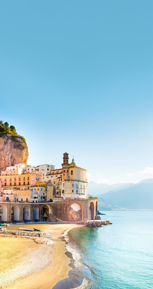 Start your Sorrento sojourn in the charming historic centre, where you can visit the 14thcentury Chiesa di San Francesco, and savour local cuisine at family-run trattorias. Don't miss a visit to the dramatic cliffs of Sorrento's coastline, with stunning views of the Gulf of Naples and Mount Vesuvius. Explore the picturesque fishing village of Marina Grande, known for its colourful boats and fresh seafood restaurants. On the Amalfi Coast, discover Positano's iconic pastelhued buildings and the historic town of Amalfi itself, home to the stunning Amalfi Cathedral. Not to be missed is a day trip to the ruins of Pompeii and Herculaneum, frozen in time by the eruption of Mount Vesuvius in AD 79.