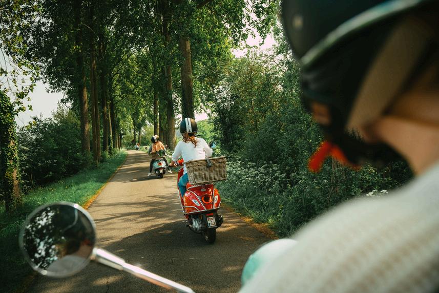 Terminez une magnifique journée en Vespa avec un apéritif sur l'une des charmantes terrasses à Sluis.