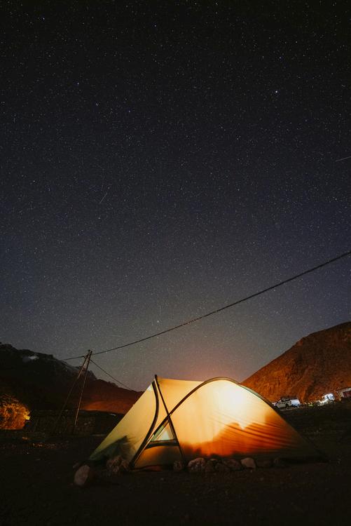 Elke avond zet je jouw tent op op een zorgvuldig uitgekozen locatie, waar je kunt ontspannen en genieten van een adembenemende zonsondergang boven de bergen Terwijl de avond valt, bereidt onze kok een heerlijke Marokkaanse maaltijd, met smaakvolle tajines, geurige couscous en natuurlijk een dampende kop muntthee om de dag perfect af te sluiten
