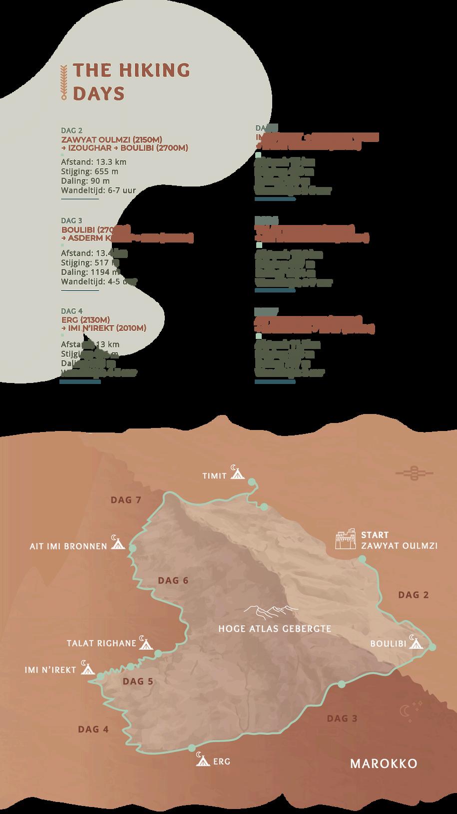 In dit magazine ontdek je alles wat je moet weten over The Atlas Trail: van het weekschema en de essentiële uitrusting tot interessante weetjes en ontmoetingen met onze deskundige gidsen Daarnaast maak je kennis met de rijke Berbercultuur, die je zintuigen prikkelt met haar kleurrijke markten, weelderige landschappen en verrukkelijke gastronomie.