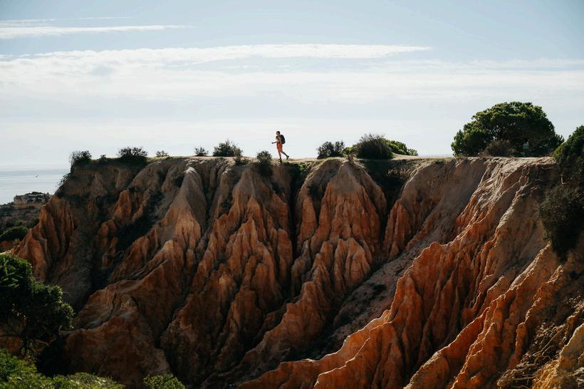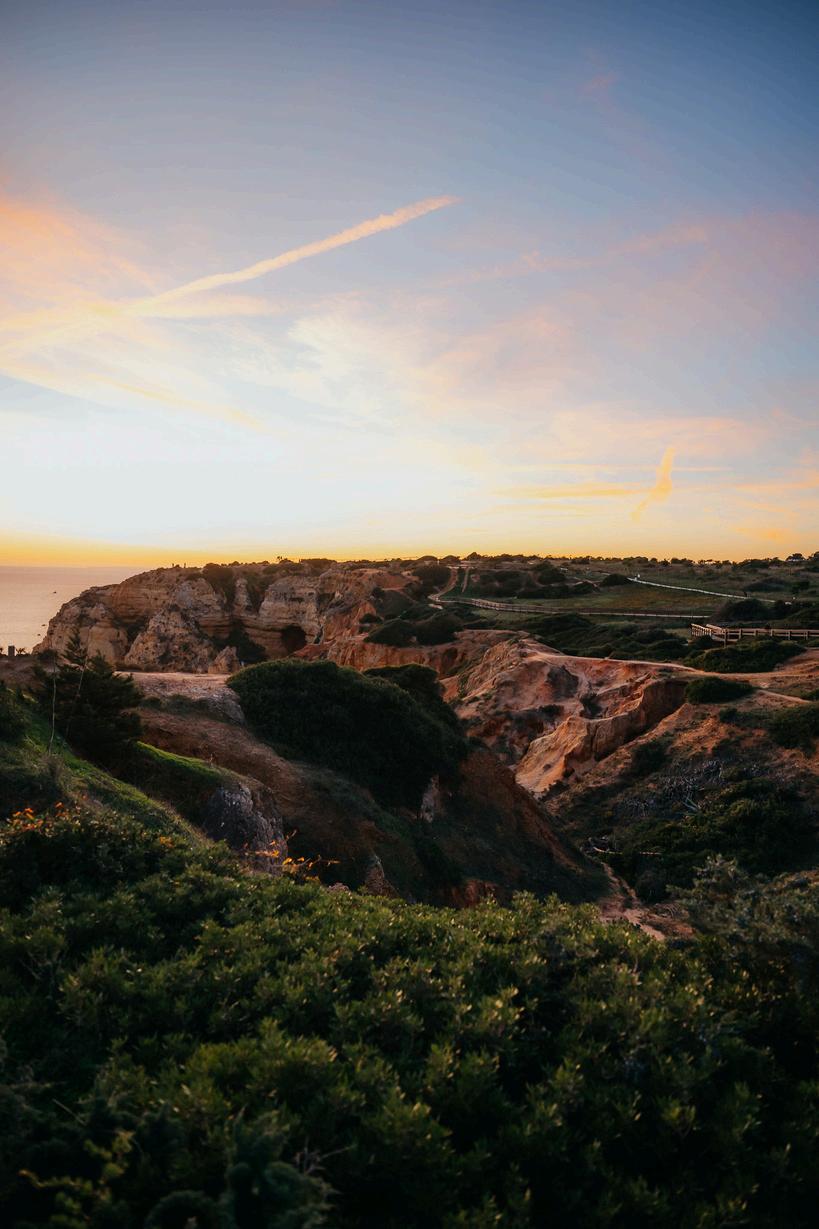Near Carvoeiro, you'll find the Seven Hanging Valleys Trail. This hiking route winds 6 kilometers along the most beautiful stretches of the Algarve coast The path leads you past steep cliffs and hidden beaches, with the highlight being the view of the famous Benagil Cave A beautiful hike to experience the rugged coastal nature of Southern Portugal