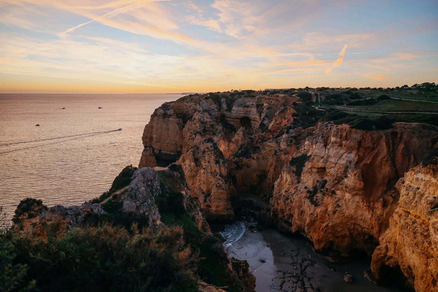 Start your day with a true bucket-list activity: a boat trip from Lagos First, you'll head out to the open sea, searching for dolphins in their natural environment Then, you'll view the magical cliffs and caves of Lagos from the water, a special experience! You can then drive on to Carvoeiro, so you'll spend the night near the start of the next day's hike. Or stay overnight in Lagos, so you can spend the evening in what we consider one of the nicest towns in Portugal