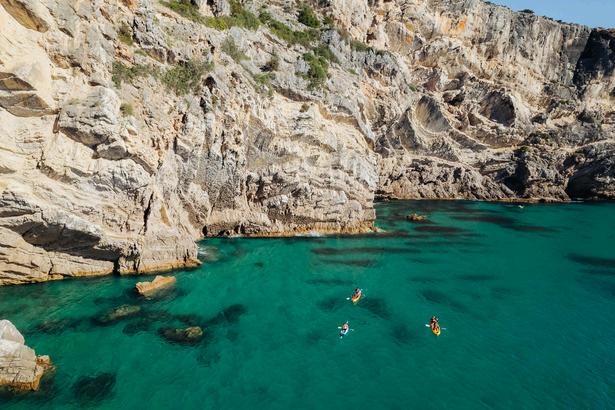 Kayak across the azure-blue waters at Sesimbra and view the impressive coastline from a different perspective. This kayak discovery tour lasts 3 hours and takes you past beautiful beaches, through caves, and along high cliffs A local guide ensures the ultimate experience - a unique way to discover Sesimbra!