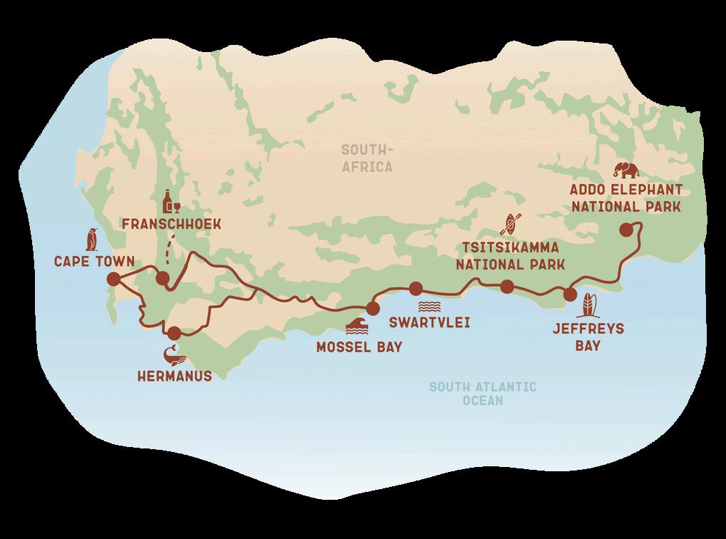 South Africa is our newest Nomads destination, where you'll come face to face with wildlife and drive along the Garden Route. You'll stay at extraordinary campsites, and with our optional surf package, you can take surfing lessons