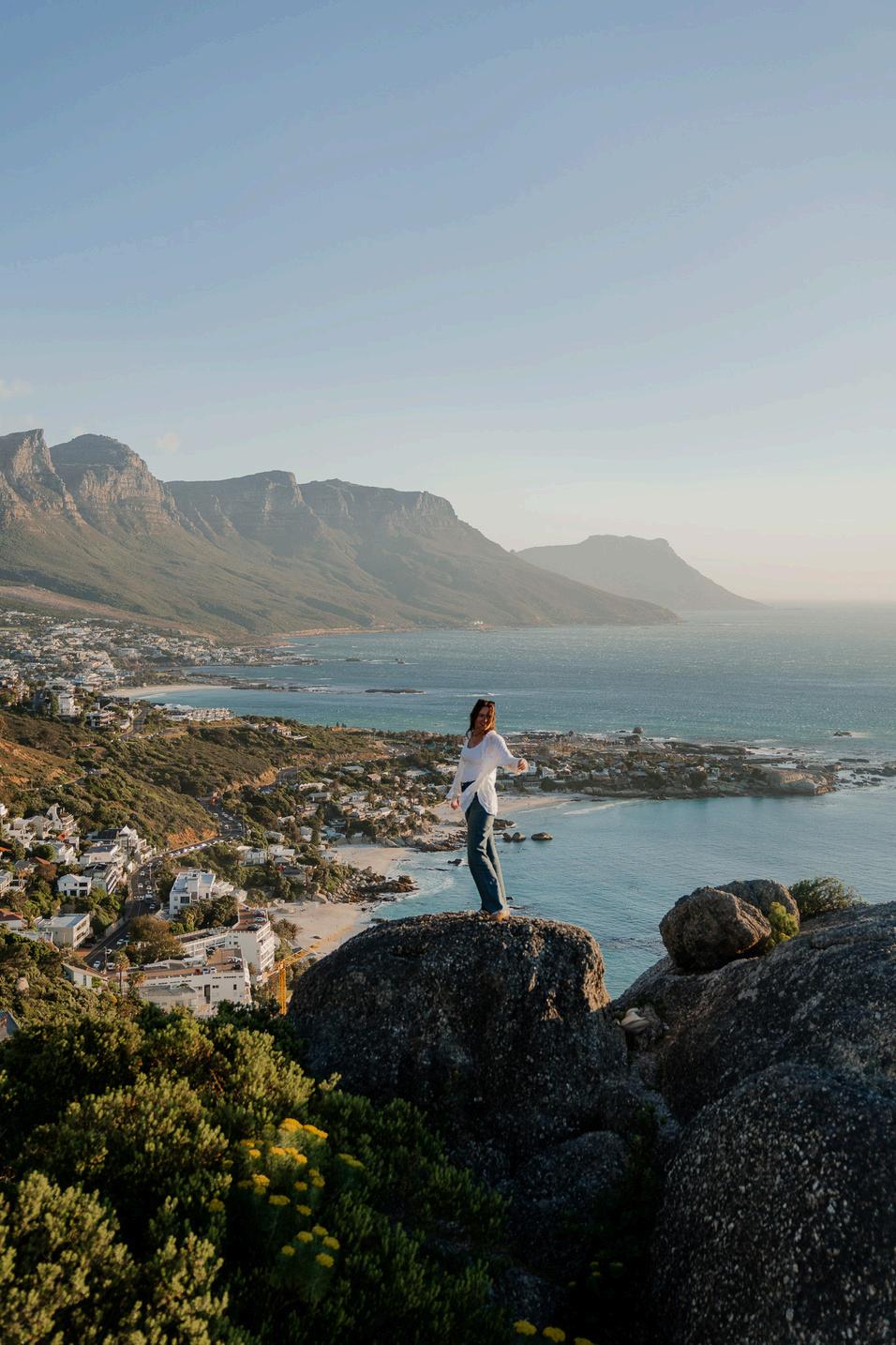 Today your road trip truly begins with the first kilometers planned If you'd like, you can start with a surf lesson in Muizenberg You'll drive a picturesque coastal route towards Hermanus We'll provide you with plenty of tips for the route, but make sure to stop at the Clarence Drive viewpoint for a breathtaking vista. If you didn't have time to visit Boulders Beach, you can make a stop at Betty's Bay, which is also home to a penguin colony
