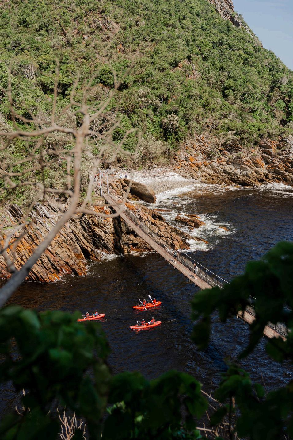 Peddel samen met een gids tussen de kliffen over de Stormsrivier, onder de hangbrug door en steeds dieper de ongerepte natuur in.