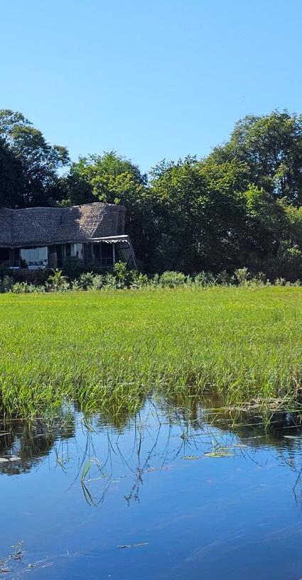 able design. Thatched roofs, echoing the traditional aesthetic, blend seamlessly with canvas, brick, wood and glass walls that disappear into the surrounding landscape. Locally sourced materials and muted tones ensure the camp feels like an organic extension of the Delta, not an intrusion upon it.