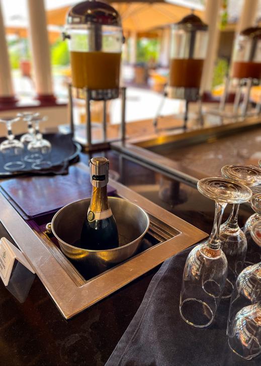 a delight. With an extensive wine list, an array of cocktails, local beers, and spirits in addition to the more familiar names, there is plenty to drink whilst watching the night set upon the hotel.