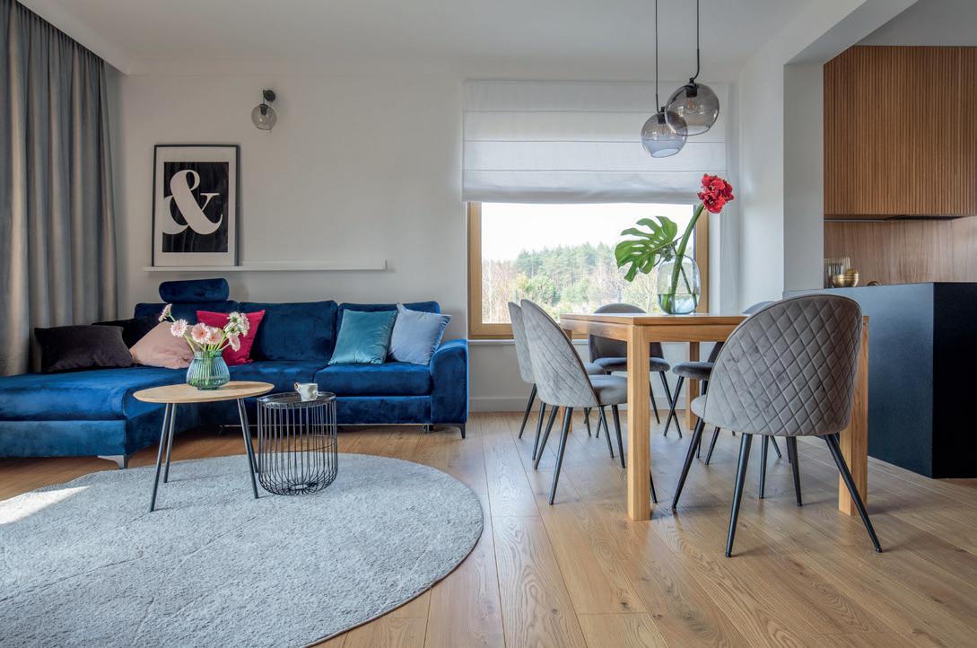 Dorota Koziara w swoich projektach w doskonały sposób komponuje palety kolorystyczne. Tym razem przygotowała intrygująco intensywne kolory, które wprowadzają energię do wnętrz.