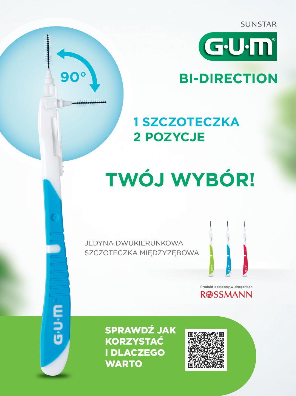 Nitkowanie zębów to niejedyna metoda oczyszczania wąskich przestrzeni pomiędzy zębami. Specjalne szczoteczki międzyzębowe poradzą sobie z tym zadaniem dużo lepiej, a do tego są prostsze w użyciu! Szczoteczki GUM BI-DIRECTION to idealne narzędzie, by oczyścić zarówno przednie, jak i tylne przestrzenie międzyzębowe, ponieważ jednym ruchem kciuka możesz zgiąć ich główkę o 90 stopni, co zdecydowanie ułatwia dotarcie do trudno dostępnych miejsc w jamie ustnej. Włącz je do swojej codziennej rutyny pielęgnacji jamy ustnej i poczuj niepowtarzalną czystość zębów. Dostępne w drogeriach, aptekach i online.