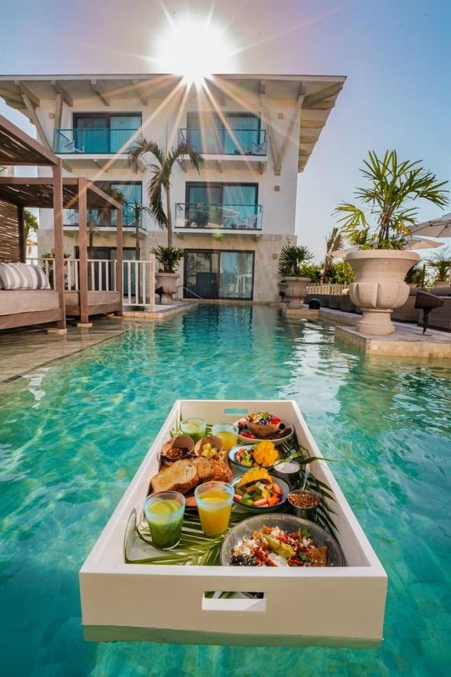La propiedad cuenta con una sofisticada piscina con cabañas que ofrecen mayor privacidad y servicio personalizado, y un bar con un gran ambiente y una estupenda selección de bebidas y cocteles artesanales.