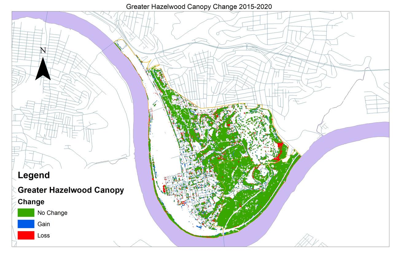 Tree canopy is the collective coverage of trees in an area Greater Hazelwood’s tree canopy is comprised of a variety of parks, greenspaces, residential trees, and street trees Residents of Greater Hazelwood experience benefits from their tree canopy such as improved air quality and stormwater management These benefits expand beyond Greater Hazelwood to Pittsburgh’s urban forest